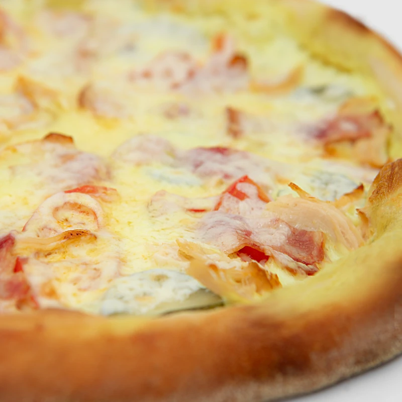 курица собственного копчения, бекон, перец болгарский, томаты, огурчики маринованные, моцарелла, соус бургер